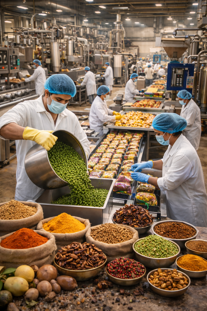 At SatPro Agro, quality and food safety are our top priorities. From raw material sourcing to final packaging, every step of our food processing workflow follows strict hygiene and quality control standards.